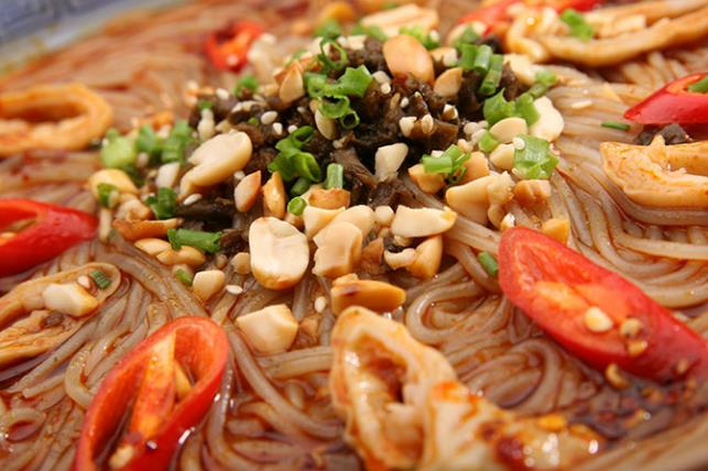 随着晶莹的粉条在两根筷子间摆动起舞。
