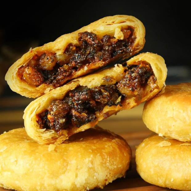 黄山烧饼外皮松酥脆香,内馅咸甜滋润,