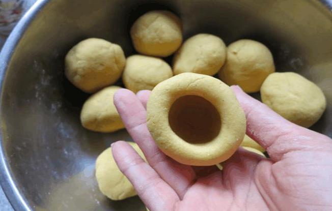 将所有面团均用大拇指戳洞,制成窝窝头状;