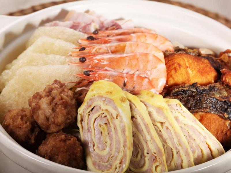 蒸三鲜:虾、笋片、咸猪脚
