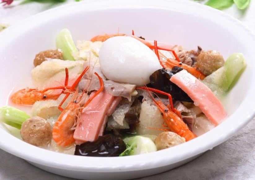 烩三鲜:虾仁,肉片,鱼丸
