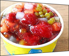 芒果飞雪,凤梨飞雪,草莓飞雪,柳橙飞雪,哈密瓜飞雪,青苹果飞雪,南极葡萄,热带荔枝,QQ水蜜桃,鲜果飞雪,情人果飞雪。