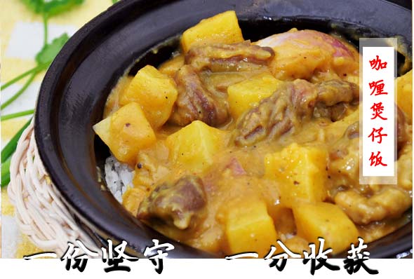 饭是采用泰国香米精制而成的,软硬适中,配以嫩滑的鸡腿肉和冬菇及特 制的佐料,经由专门定制的砂煲焗煮而成