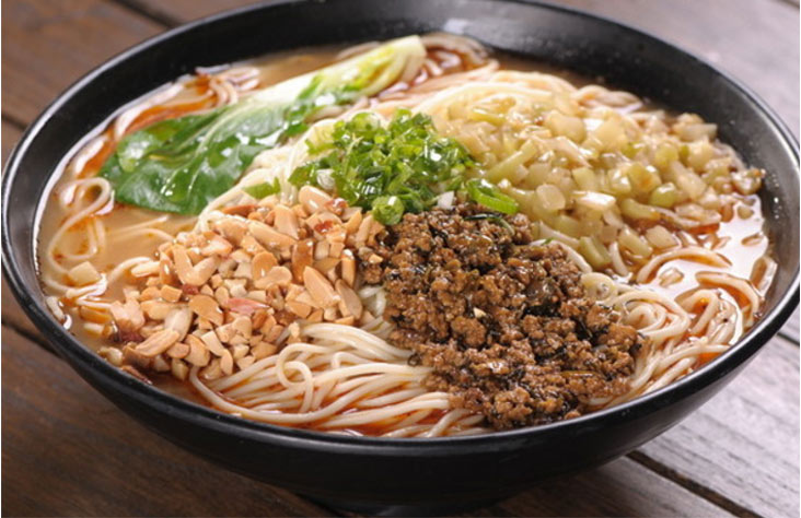 担担面是一道由面粉、红辣椒油、芝麻酱、葱花等材料制作而成的川菜。是“中国十大面条”之一,著名的成都小吃(又说自贡小吃,起源于自贡)。