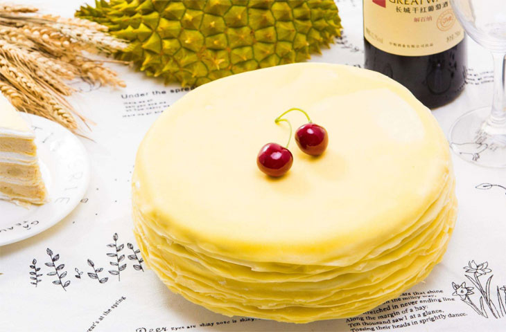 榴莲千层蛋糕是以低筋面粉、黄油、奶油、鸡蛋、榴莲、牛奶等食材制作而成的食品。香甜软糯,美味可口。冠心病、高血压、糖尿病,动脉硬化患者忌食;孕妇和肥胖者尽量少食或不食。