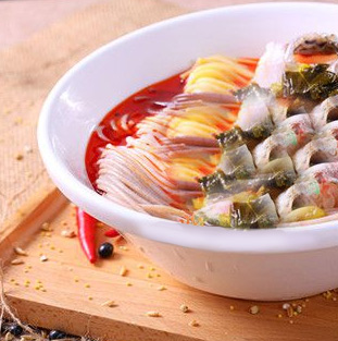 以五谷杂粮粉,搭配鲜香活鱼和精致慢炖的高汤辅以独家秘制的古法新料变换出十多种口味的五谷鱼粉。